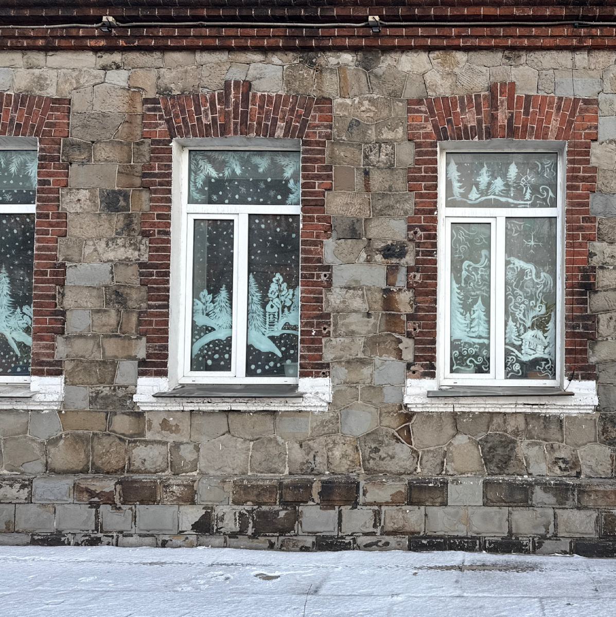 По одну сторону море и грузовой порт, с другой жилые дома и учреждения. По зимним узорам на окнах можно догадаться, что там располагается.
