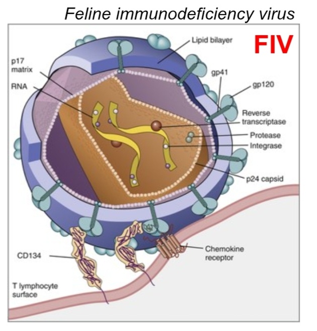 Вирусный иммунодефицит кошек (FIV) — это медленно прогрессирующая хроническая инфекция, вызываемая лентивирусом, которая приводит к глубокому нарушению работы иммунной системы. Болезнь получила название «кошачьего СПИДа» из-за сходства механизмов развития и клинических проявлений с ВИЧ-инфекцией у человека. FIV поражает в первую очередь клетки иммунной системы, делая организм беззащитным перед вторичными инфекциями.