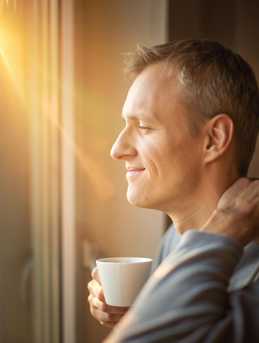 - Священное пространство (5 минут): Сядьте (не стоя, не на бегу). Отложите телефон. Возьмите чашку двумя руками, почувствуйте тепло.