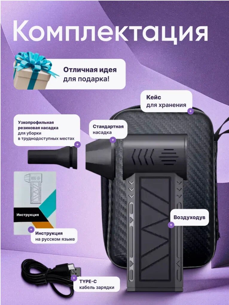 Когда нужен быстрый и эффективный способ избавиться от пыли, мусора или загрязнений в самых труднодоступных местах — на помощь приходит аккумуляторная воздуходувка с турбовентилятором. Без проводов, с регулируемой скоростью и удобной эргономикой она станет незаменимым инструментом как дома, так и в мастерской, гараже или в автомобиле. Компактная, лёгкая и безопасная — она превращает уборку в простой и приятный процесс. Зачем вам нужна воздуходувка с турбовентилятором Ключевые характеристики (примерные, подстройте под конкретную модель) Как это работает