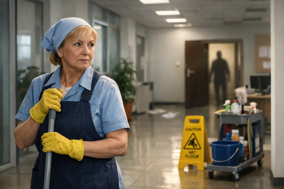 Ольга в панике попыталась развернуться, но дернула тележку слишком резко. Ведро качнулось, перевернулось, и грязная вода потоком хлестнула по полу, забрызгав всех вокруг. Люди в белоснежных рубашках и дорогих костюмах с отвращением отскакивали со стульев, встряхивали рукава, вытирали капли.