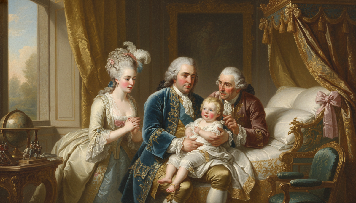 Мария-Антуанетта склонялась над колыбелью и улыбалась. Какой же красивый у неё сын — щёки алые, словно натёртые яблоком, глаза ясные. Придворные дамы ахали от восторга. Даже король, обычно сдержанный, не мог скрыть умиления.