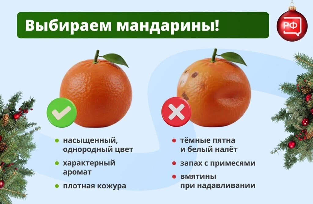 ▶️На что обратить внимание Внешний вид. Цвет — от светло-оранжевого до оранжево-красного, без белого налёта и тёмных пятен. Плотность кожуры. Слегка надавите на кожуру: если осталась вмятина, возможно, плод переморожен или начал портиться. Спелость. Спелые мандарины имеют ровный цвет и яркий аромат. Зелёные листочки. Это не показатель свежести, а маркетинговый ход. Веточки хранятся долго, и с их помощью создаётся впечатление, будто мандарины только что с дерева. ▶️Как правильно хранить Чтобы мандарины оставались свежими дольше, храните их в холодильнике. При комнатной температуре они портятся быстрее. Не держите фрукты в полиэтиленовых пакетах — из-за влаги они могут начать гнить. ▶️Сколько можно съесть Не стоит увлекаться: в больших количествах мандарины могут вызвать аллергию или проблемы с желудком. Взрослому можно съедать 5–6 штук в день, лучше в несколько приёмов. Детям: — до трёх лет — две-три дольки в день; — с трёх лет — половину плода; — дошкольникам — одну мандаринк