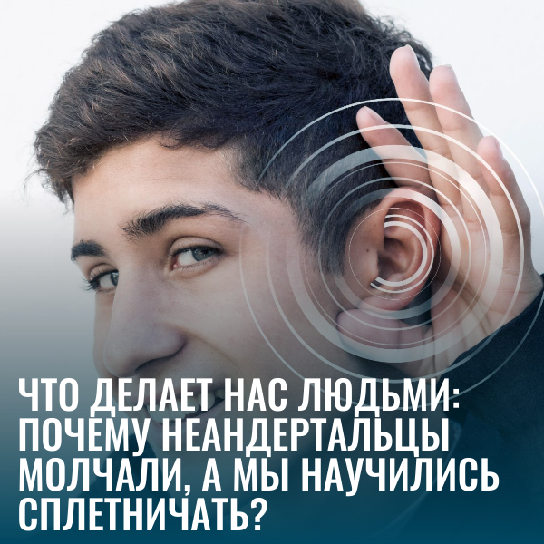 - Биологическая основа для речи (нужное строение уха и гортани) сформировалась у нашего общего с неандертальцами предка сотни тысяч лет назад.