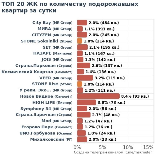 ) 🏆 ЛИДЕРЫ ПО РОСТУ: ПИК 25 ЖК 79кв +17,2% Самолёт 17 ЖК 336кв +7,1% MR Group 11 ЖК 1816кв +3,2% 1 ДСК 5 ЖК 12кв +7,6% Гранель 5 ЖК 10кв +3,3% Страна 4 ЖК 224кв +7,3% Аквилон 3 ЖК 16кв +3,2% Stone 3 ЖК 465кв +0,3% ФСК 3 ЖК 5кв +14,9% Брусника 3 ЖК 6кв +4,5% 👇 Полная статистика: 📲 В Telegram — быстро посмотреть 🌐 На MskMeter.ru — графики цен и скидки за любой период