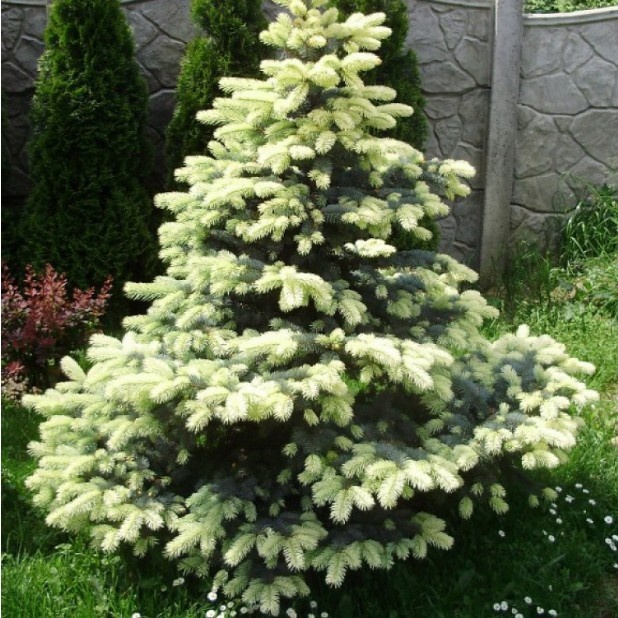 Это сорт колючей ели, названный в честь польского оригинатора Яна Биалобока. Её главная особенность — молодые весенние приросты светло-кремового или молочно-желтого цвета, которые контрастируют с серебристо-голубой хвоей остальной части дерева. Ель "Белобок" — медленнорастущее, неприхотливое и светолюбивое растение, подходящее для одиночных и групповых посадок в садах. Хвоя: Жесткая, колючая, серебристо-голубая, с яркими кремовыми молодыми приростами весной. Форма кроны: Изначально неправильная, полусферическая, затем приобретает коническую форму. Ветви растут горизонтально, крона плотная. Рост: Медленный, годовой прирост около 10-15 см. Взрослое растение может достигать 3-5 м в высоту и 3 м в диаметре. Шишки: Женские — красные, мужские — буровато-коричневые. Зимостойкость: Высокая, хорошо зимует в условиях средней полосы и севера России Солнечные участки, где окраска хвои наиболее яркая. Хорошо переносит полутень, но в тени теряет декоративность. Предпочитает легкие, хорошо дренирован