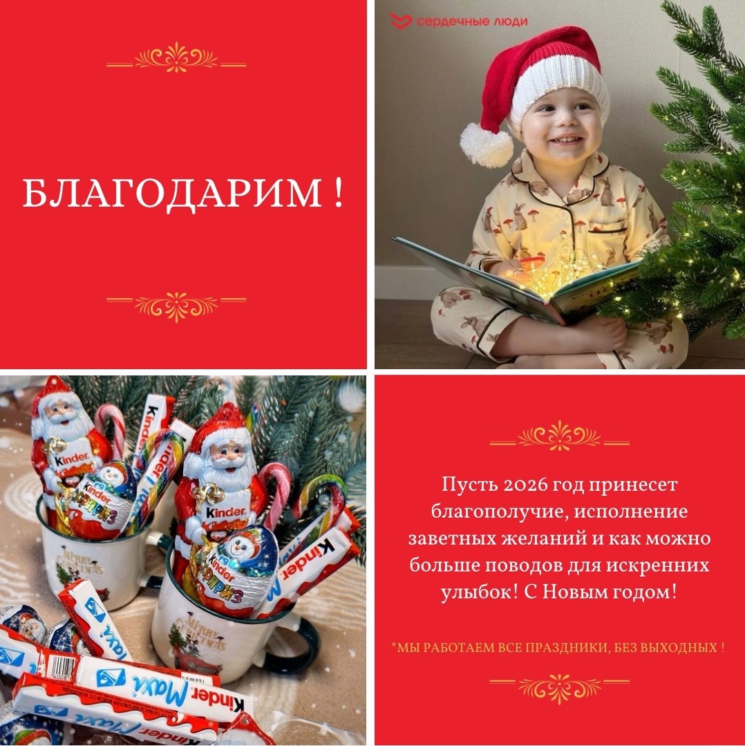 Люди»! ✨ От всей души поздравляем вас с наступающим Новым 2026 годом! 🎄 Уходящий год еще раз доказал нам, что для доброты не существует преград, а вместе мы — огромная сила, способная менять жизни к лучшему. Мы искренне благодарим вас за то, что вы были рядом: ❤ за каждое пожертвование; 🤝 за каждую минуту волонтерства; 📢 за информационную поддержку; 🙏 и просто за веру в наше общее дело. Благодаря вашим открытым сердцам фонд «Сердечные Люди» продолжает помогать тем, кто в этом нуждается больше всего. В новом году мы желаем вам и вашим близким крепкого здоровья, душевного спокойствия и неиссякаемого источника вдохновения. Пусть каждый ваш день будет наполнен смыслом, а добро, которое вы так щедро дарите миру, возвращается к вам в десятикратном размере! 📈 Пусть в ваших семьях царят любовь и согласие, а заветные мечты сбываются легко и красиво. ✨ Спасибо, что выбираете путь милосердия и творите чудеса вместе с нами. Пусть 2026 год станет временем больших побед и светлых событий!