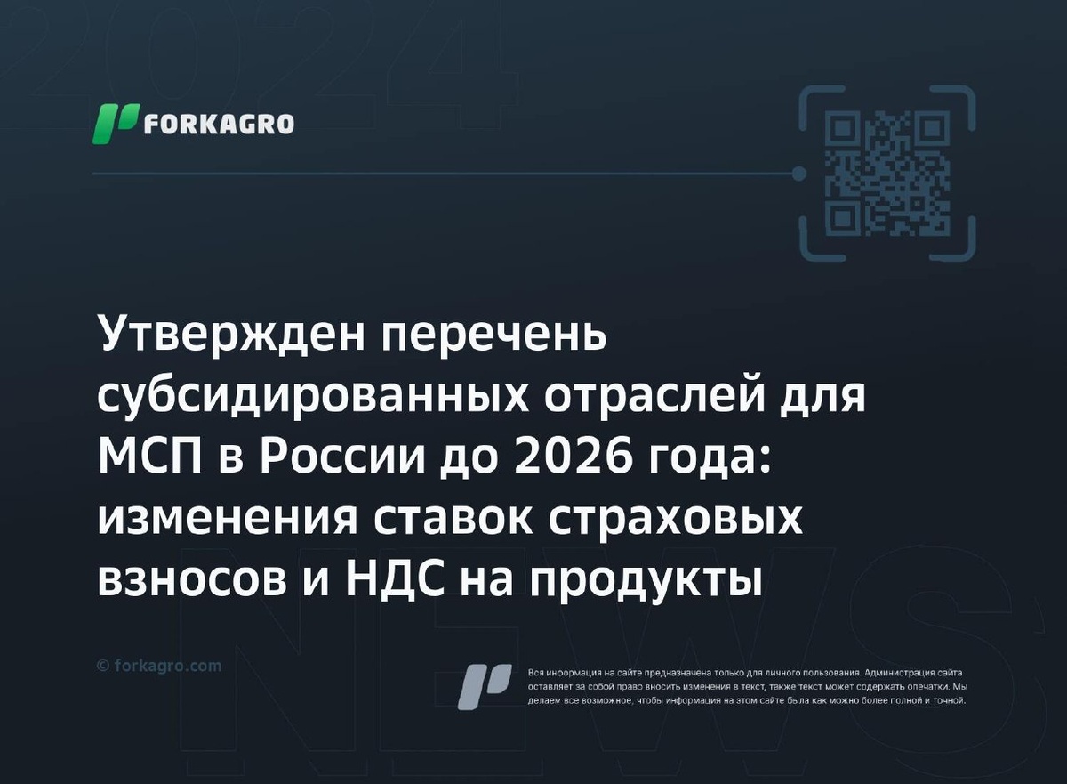 Утвержден перечень субсидированных отраслей для МСП в России до 2026 года: изменения ставок страховых взносов и НДС на продукты