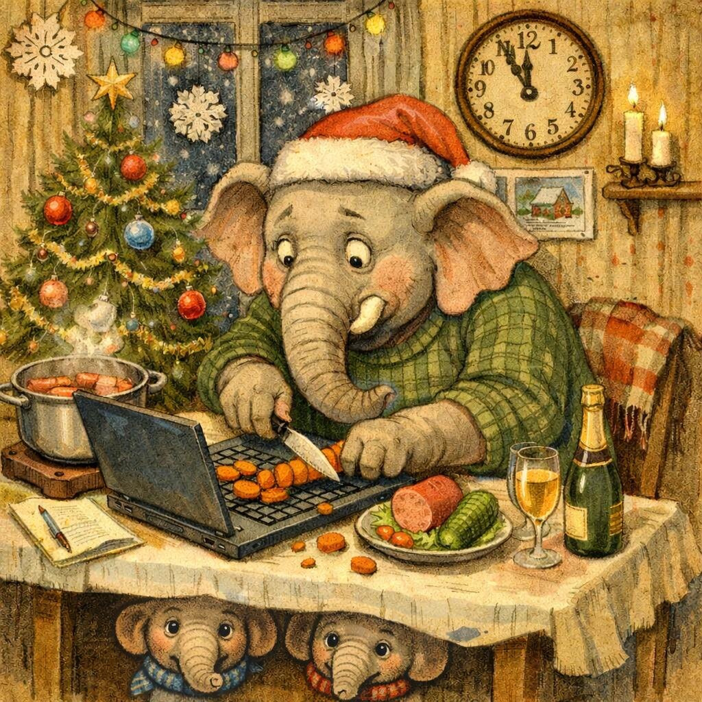 Ну что же… Новый год уже совсем скоро, а я снова ничего не успеваю. Впрочем, для кого-то это уже не новость. До пяти утра проверял письма, вносил правки в конкурсные работы и готовил инструкцию для голосования на конкурсе. Самым сложным и долгим оказалось перечислить все 63 группы и указать, какая группа какую оценивает. Засыпал с зажатой клавишей Del раз пять. Спойлер: оценивать нужно будет рассказы из предыдущей группы по отношению к той, в которой находится ваша работа. Инструкция уже лежит в открытом доступе: https://litclubbs.ru/writers/12117-kak-golosovat-v-konkurse-novaja-fantastika-2026.html Днём нужно будет сделать рассылку по участникам и добавить новость о старте голосования. А вообще у меня пока «зависли»: - Итоги голосования "Дня заснеженных историй" (спасительница Чипирип уже всё посчитала, нужно только написать новость) - Запуск голосования за лучших по итогам 2025 года - Новость с поздравлениями всех участников клуба «Бумажный Слон» с Новым годом. Учитывая, какой