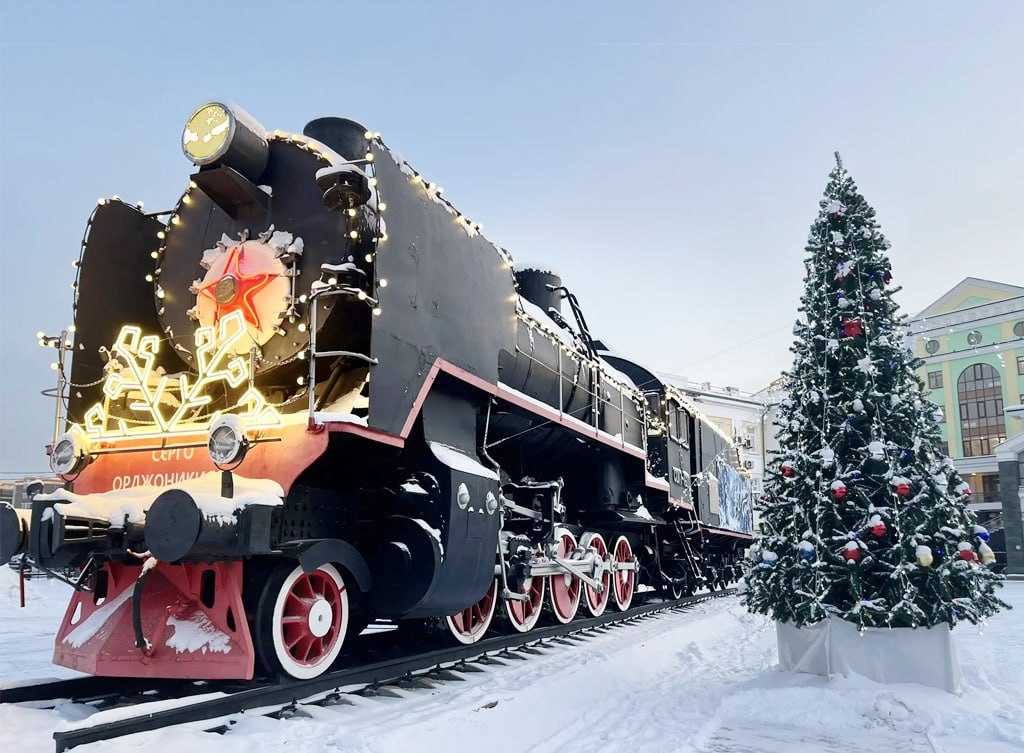 🚂 В преддверии Нового года на Красноярской железной дороге праздничной иллюминацией впервые украсили паровозы-памятники
