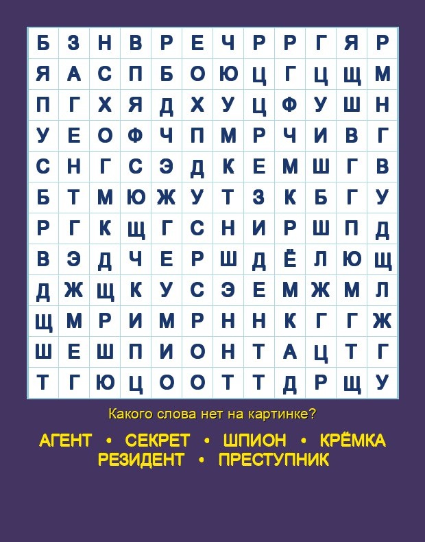 : 💡 Миссия: высокая секретность! Я ваш резидент в шпионской сети "Найди слова"! Поле 12 на 12 — поле операции, а слова — зашифрованные сообщения! Дешифруйте их во всех направлениях — каждая диагональ может содержать секретные данные! Я уже проверил приборы ночного видения и готов к заданию! Каждое расшифрованное сообщение — удар по вражеской агентуре! Работаем тихо, но эффективно!