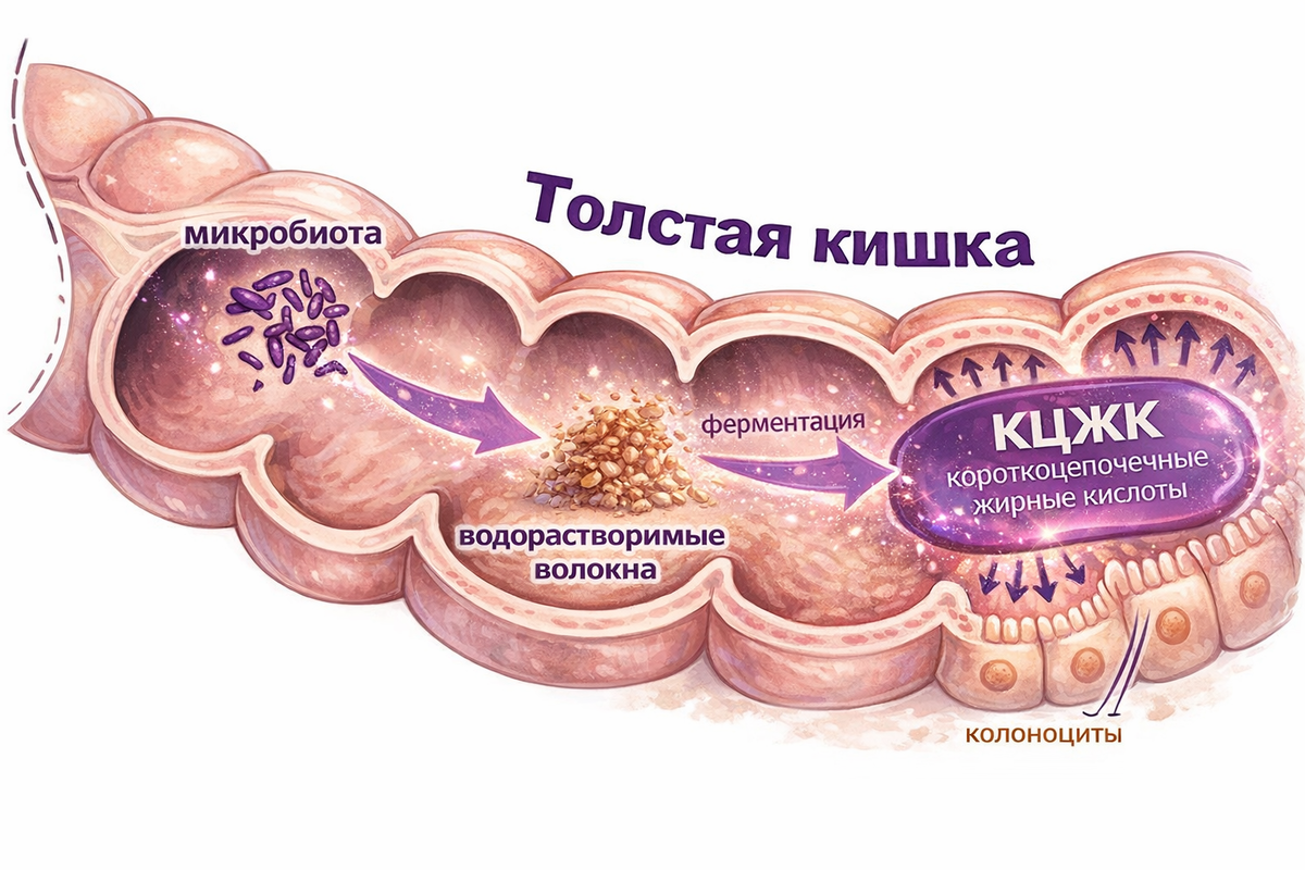 Если вы думаете, что клетчатка практически не имеет энергетической ценности, то сильно ошибаетесь. Калорий в клетчатке действительно немного, но суть в том, что ей питаются наши кишечные бактерии, которые, поедая эту клетчатку, производят Короткоцепочечные жирные кислоты (КЦЖК), основными из которых являются ацетат, пропионат и бутират. А общий дневной синтез таких жирных кислот может составлять от 100 до 500 ккал., и даже выше (особенно, на диете, богатой клетчаткой). Это значит, что КЦЖК легко могут закрывать нашу энергетическую потребность на 10 -20% от общего дневного рациона. А если вы слишком уж травоядный, и в целом потребляете небольшое количество калорий, то ваш процент энергообеспечения за счет КЖК может быть значительно выше. Вот вам и ответ на вопрос, почему вон тот парень питается листами салата и огурцами, и при этом каким-то образом поддерживает нормальную жизнедеятельность. Ведь калорийность его рациона меньше 1000! На самом деле, не мне, ни вам, ни парню, не ясно, скол
