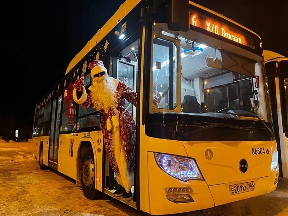 Новогодняя атмосфера в Нижневартовске добралась и до общественного транспорта. Пассажиры городских автобусов отмечают: праздничное настроение появляется уже с первой остановки — стоит только зайти в салон.