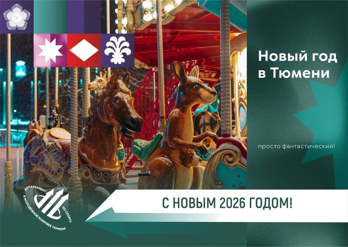! Департамент по спорту и молодежной политике администрации города Тюмени сердечно поздравляет вас с наступающим 2026 годом и светлым праздником Рождества! Этот волшебный период - время, когда особенно важно верить в чудеса, ставить новые цели и стремиться к их достижению. Пусть наступающий год станет для каждого из вас временем ярких побед, спортивных достижений и реализации самых смелых планов. Мы благодарим всех, кто в уходящем году активно участвовал в спортивной и молодежной жизни нашего города — спортсменов, тренеров, наставников, волонтеров, активистов и всех, кто своим примером показывает, как важно вести здоровый образ жизни и всесторонне развиваться. В новом году мы продолжим создавать все условия для развития спорта и молодежной политики в Тюмени. Будем открывать новые спортивные объекты, поддерживать талантливую молодежь, развивать волонтерское движение и создавать пространство для самореализации каждого жителя нашего города. Желаем вам крепкого здоровья и неиссякаемой