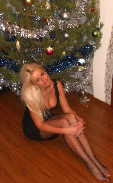 В мягком свете новогодней ночи, словно сошедшая со страниц глянцевого журнала, она сидит у подножия ёлки — воплощение элегантности и лёгкой загадочности. Её светлые волосы, словно шёлковая река, ниспадают на плечи, обрамляя лицо, в котором читается и игривость, и некоторая задумчивость.