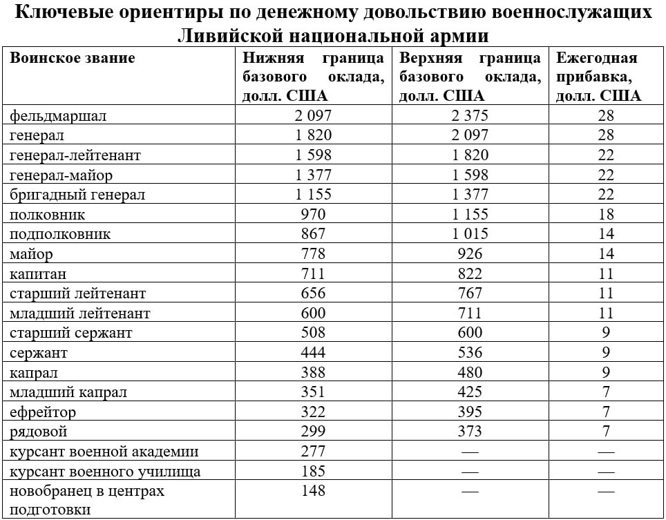 Палата представителей восточной Ливии (Бенгази) утвердила 29 декабря новый табель денежного довольствия для личного состава Ливийской национальной армии. Инициатором корректировок выступил заместитель главнокомандующего ЛНА генерал Саддам Хафтар. 🟡 Согласно публикациям ливийских СМИ, документ фиксирует размеры окладов по категориям военнослужащих и задает ежегодные прибавки, формируя единую окладную сетку от уровня новобранца до высших генеральских званий. 🤔 Фактическое денежное довольствие в ЛНА формируется не только окладом, но и системой надбавок, поэтому итоговый эффект повышения будет определяться практикой начислений: кому, в каком объеме и по каким основаниям реально оформят доплаты. Одновременно предусматривается повышенная надбавка до 150% в случае гибели, пропажи без вести или ранения в ходе боевых действий. 🗒 По сути, это решение следует трактовать не как расширение «социальных гарантий», а как финансовый рычаг восточного лагеря, направленный на укрепление дисциплины,
