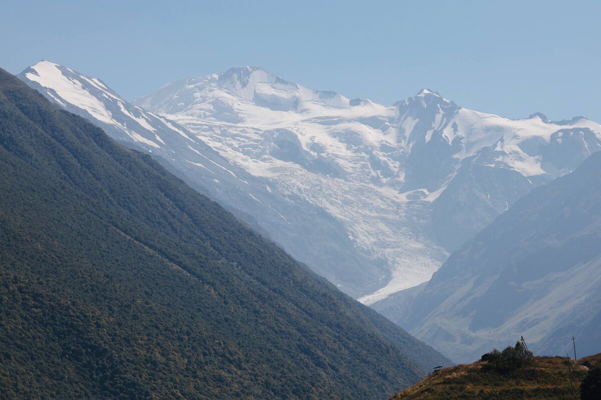 Вид из села Верхний Кани, Мидаграбинский водопад, Сказский ледник и канатная дорога в Цее. (@birds_by_NikaMart)