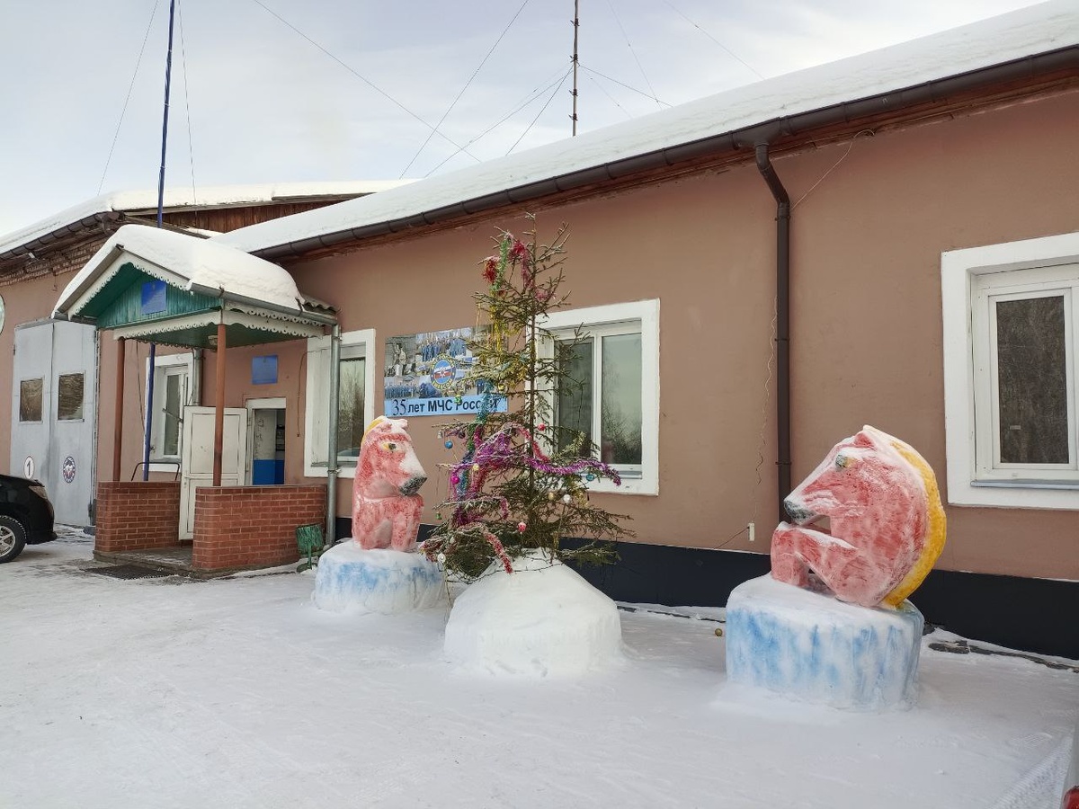 🎄Алексей Шуляк, водитель 22-ой пожарно-спасательной части, на территории изготовил тематическую снежную композицию, которая теперь создаёт
