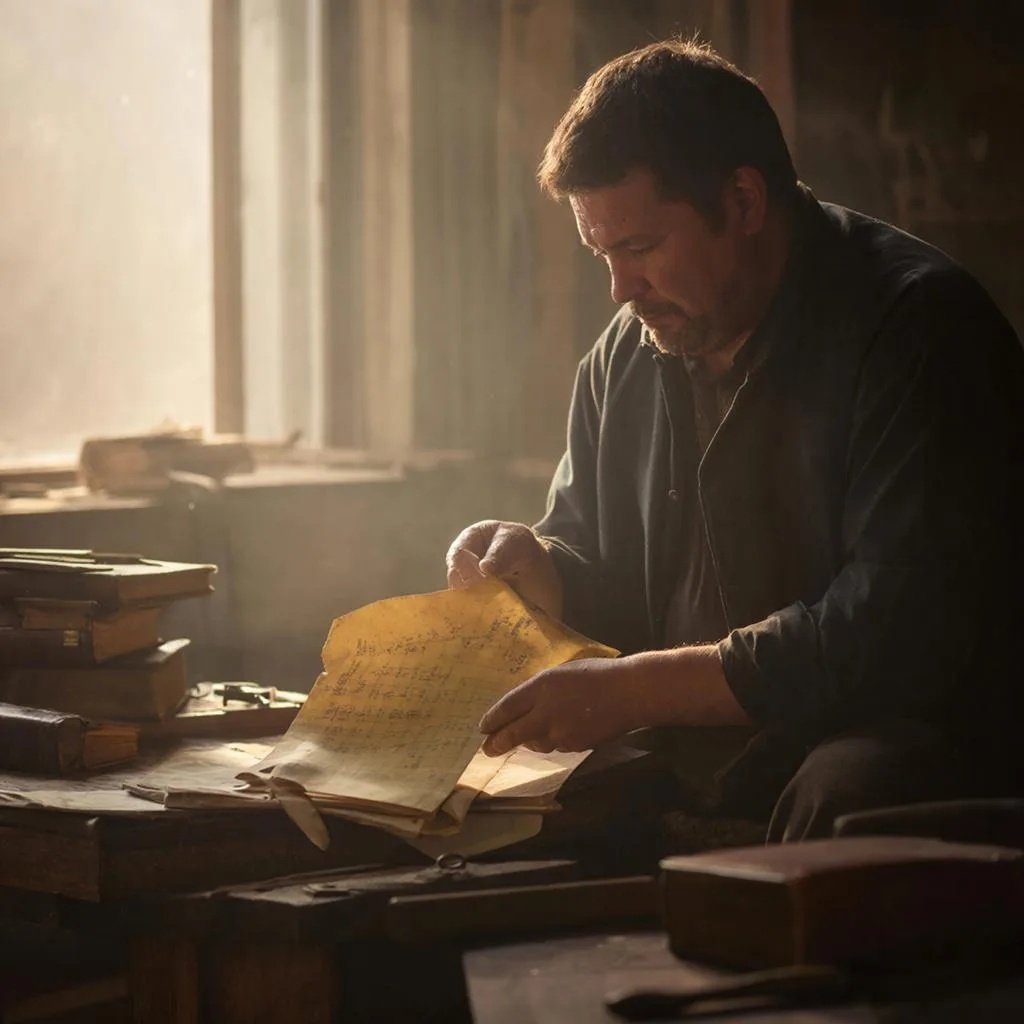 Ремонтировал я старый том Шекспира, который сосед-учитель отдал. Работал скальпелем аккуратно, отделял потрескавшуюся кожу переплёта. Дело это тонкое, почти ювелирное. Одно неверное движение, и можно прорезать бумагу, которой больше полувека. Под картоном оказался слой мнущегося материала, и мои пальцы, привыкшие к гаечным ключам, двигались с непривычной осторожностью. В мастерской пахло, во так: пылью старых фолиантов, резким полимерным клеем и едва уловимым ароматом лаванды от саше, что жена на полку положила. Лезвие вдруг наткнулось на что-то плотное, не на бумагу. Я поддел аккуратно, и из разреза показался уголок пожелтевшей бумаги, хрупкой, как осенний лист.