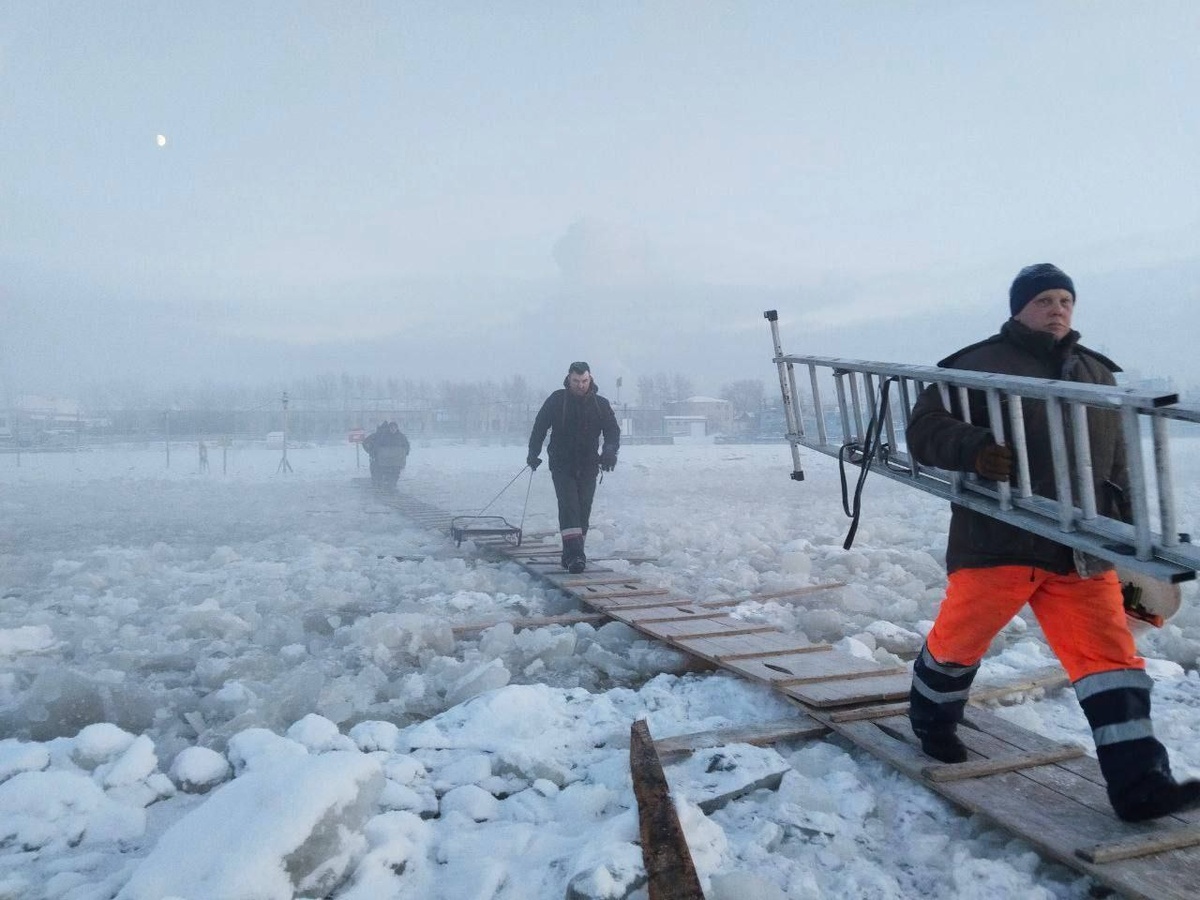 Лёд крепкий, соответствует нормам. Паромы временно не ходят.