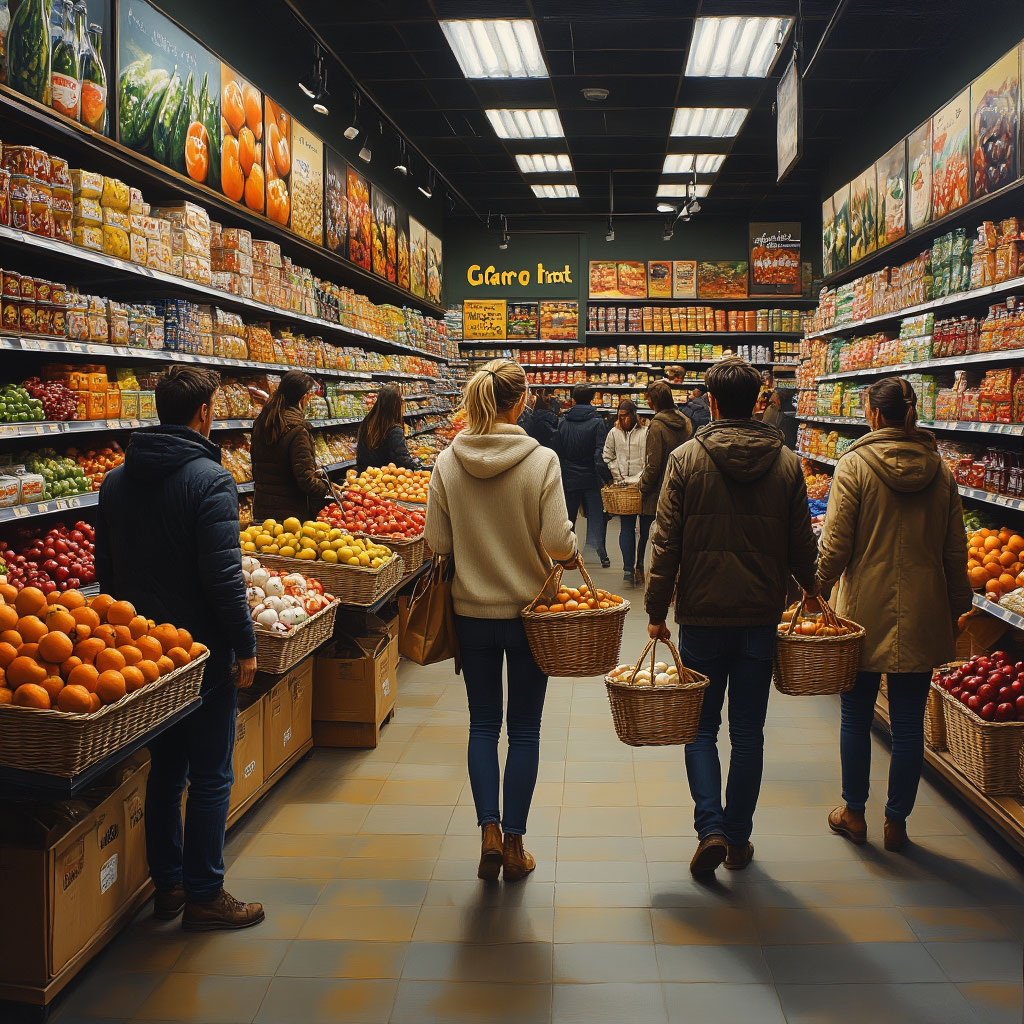 - Широкий ассортимент продуктов питания и хозяйственных товаров.