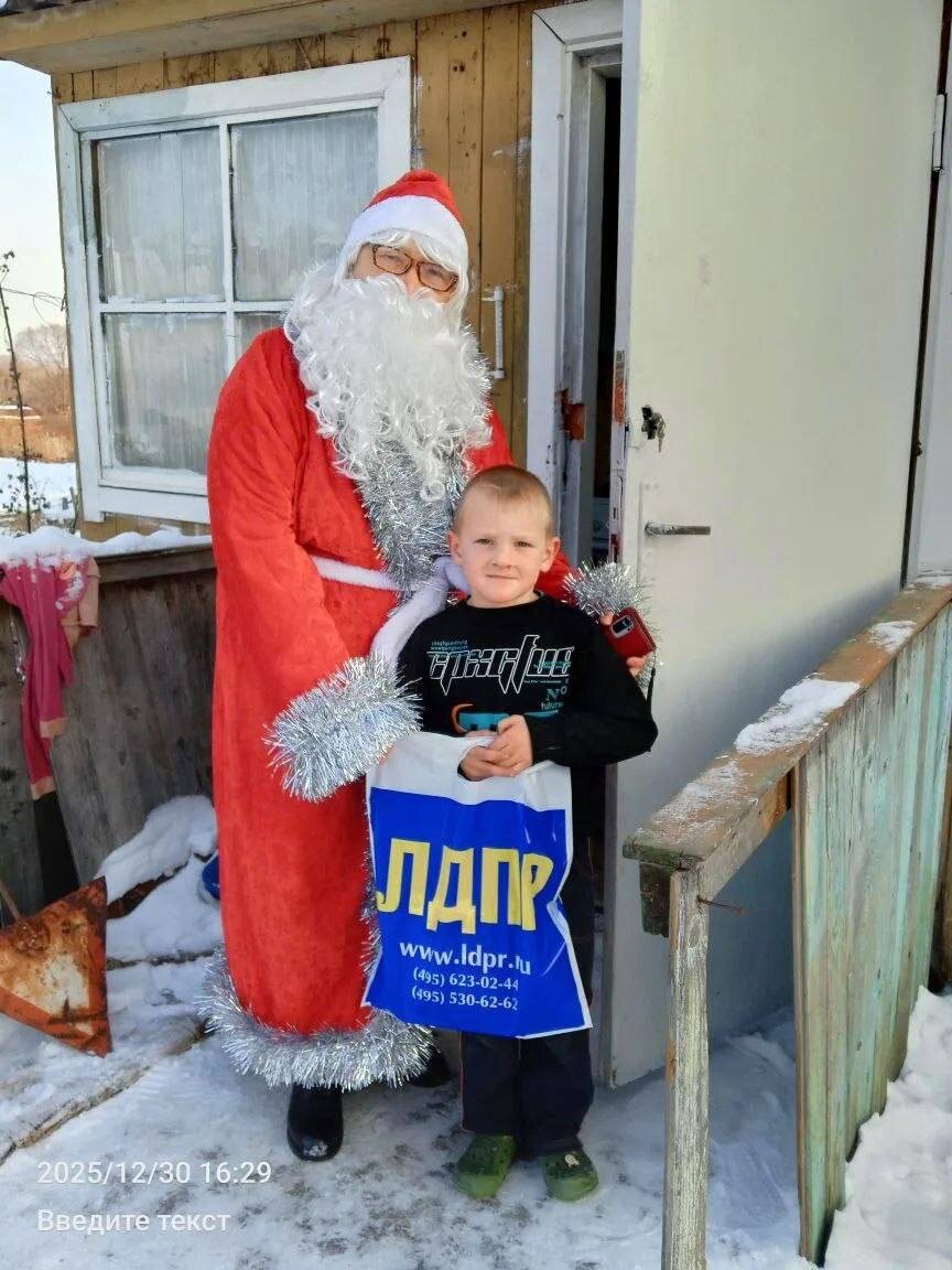 Актив Бикинского местного отделения ЛДПР традиционно поздравили малышей в образе Деда Мороза