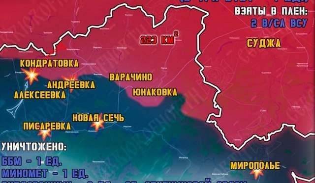 В группировке войск «Север» ВС РФ, продолжающей создание полосы безопасности в Харьковской и Сумской областях, сдерживая ВСУ у границ Курской области, рассказали о текущей обстановке на линии фронта. 30 декабря на Сумском направлении на всех участках продолжались ожесточенные бои. Штурмовые подразделения Северян продвинулись на семи участках в Сумском и Краснопольском районах, продавливая оборону противника. Взяты в плен военнослужащие ВСУ. Российские артиллерия и расчеты БПЛА нарастили интенсивность работы по украинским позициям. Противник перегруппировывался и наращивал количество живой силы на передовой в Краснопольском районе и возле Мирополья Сумской области. Попытка переброски двух боевых групп в направлении села Кондратовки была вскрыта нашей аэроразведкой, комплексным огневым поражением одна группа уничтожена, вторая понесла потери. По населенным пунктам Сумской области, занятым российской армией, по информации Северян, ВСУ регулярно применяет РСЗО, в том числе «Вампир» и «Град