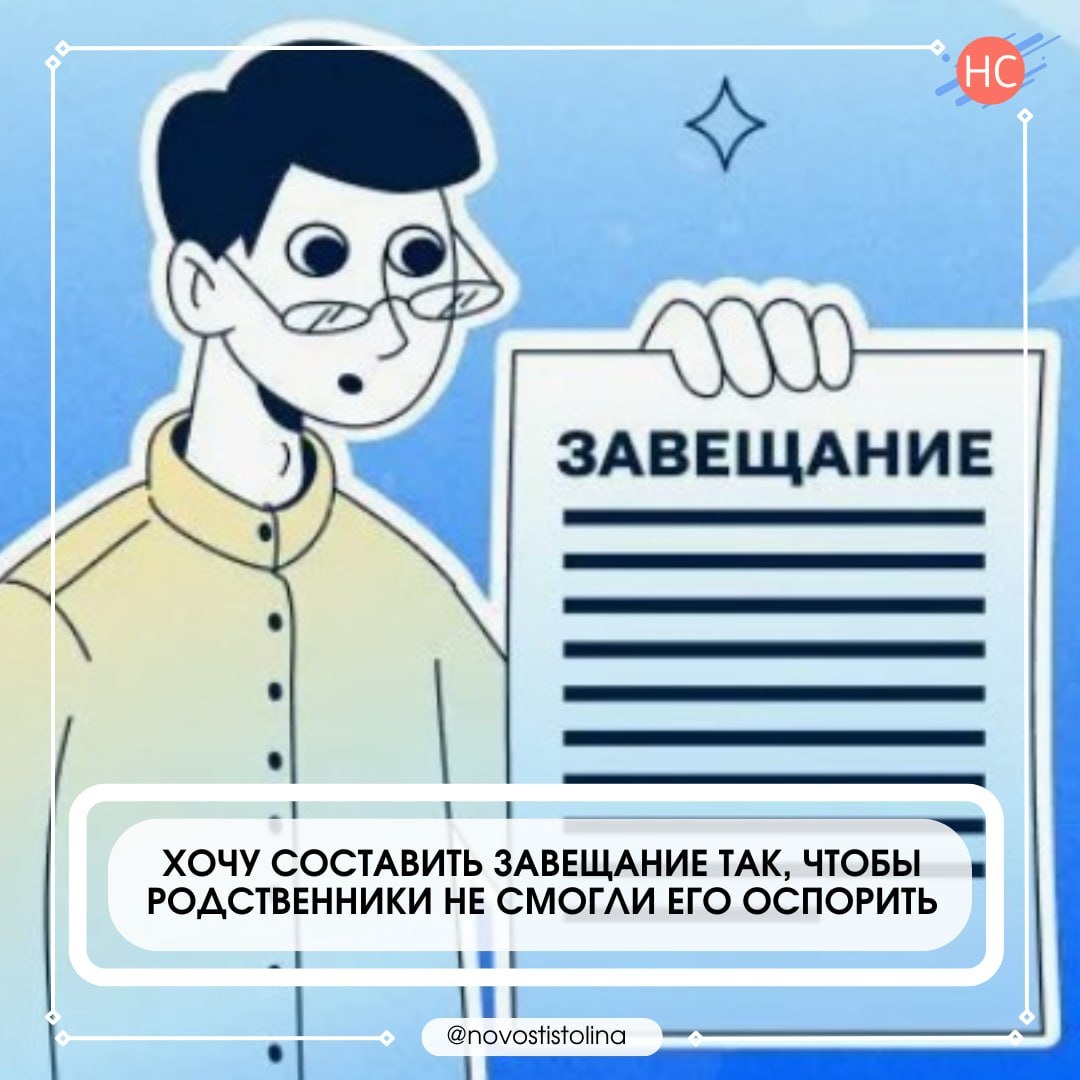 , акции, авторские права или другое имущество, которое мы хотим кому-то конкретному оставить после себя путем составления завещания, где четко оговаривается, кому и что из нажитого человеком при жизни достанется после его смерти. ▪️Но все чаще после смерти завещателя родственники начинают делить наследство умершего, каждый старается «забрать что-то свое», появляется спор, что порождает конфликт, и как следствие влечет например, заявление о том, что, составляя завещание, завещатель был невменяем. Как сделать так, чтобы избежать этих дрязг и быть уверенным, что последняя воля завещателя будет исполнена? 👉 Продолжение на сайте polese. by