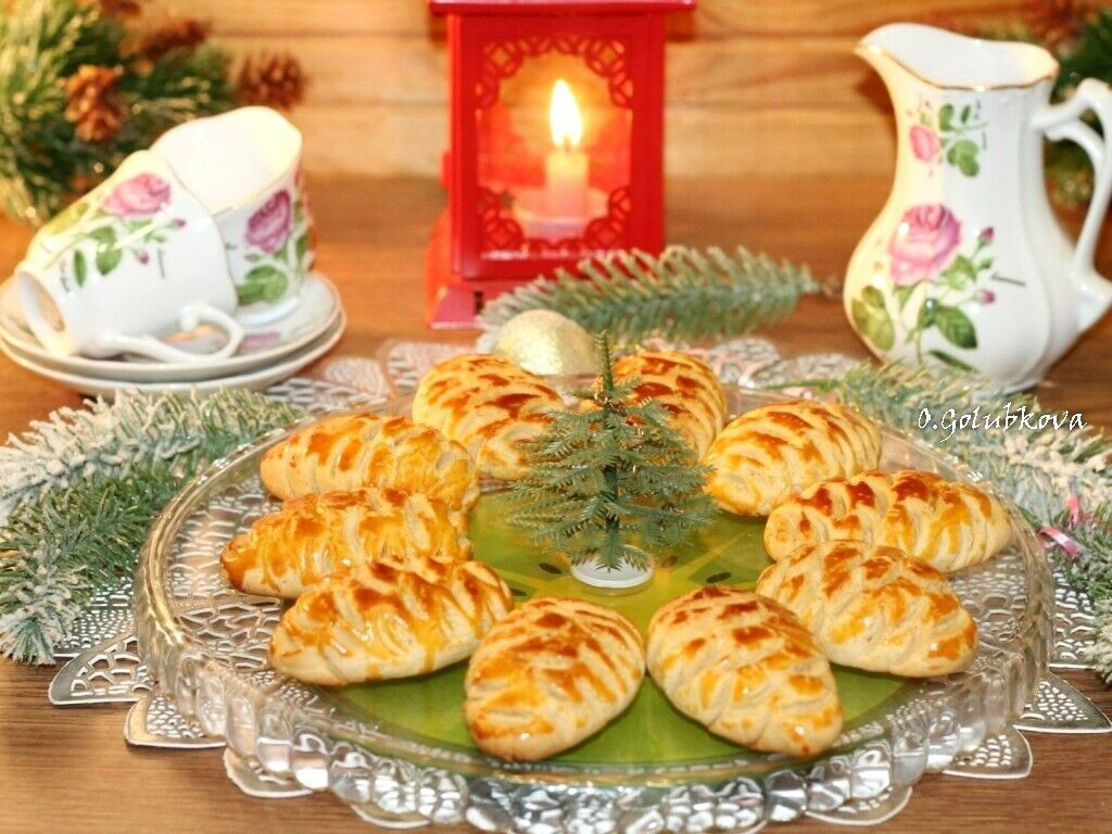 Ароматное, рассыпчатое медовое печенье "Шишки", можно приготовить без формочек для выпечки. Готовить просто, а печенье получается очень вкусным и красивым. Ингредиенты для «Новогоднее медовое печенье Шишки»: Мука пшеничная — 210 г Масло сливочное (мягкое или растопленное и охлажденное) — 60 г Сахар — 50 г Яйцо куриное (+ желток для смазки шишек) — 1 шт Мед — 1 ст. л. Специи (для пряников) — 0,5 ч. л. Разрыхлитель теста (без/г) — 1 ч. л. Цедра апельсина (или лимона, сухая или свежая) — 1 ч. л. Ванилин — 1 пакет. Соль — 1 щепот. Время приготовления: 40 минут Количество порций: 10 Рецепт «Новогоднее медовое печенье Шишки»: 1. Продукты для приготовления теста. 2. Смешиваем: яйцо, соль и сахар ложкой. 3. Затем взбиваем венчиком. 4. Продолжая взбивать, добавляем мед... 5.... и растопленное в микроволновке и остывшее сливочное масло. 6. Для вкуса и ароматизации теста, кладем молотые специи для пряников по 1 щепотке: корицу, имбирь, мускатный орех, гвоздику, кардамон, анис и ванилин. Добавляем