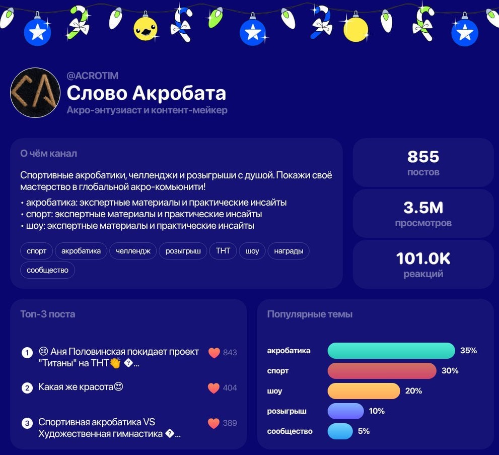 Это — вы. ✨ 2025 уходит в историю. 📌 855 постов 👀 3,5 миллиона просмотров ❤️ 101 тысяча реакций Но если честно — цифры тут не главное. Главное — люди по ту сторону экрана. 👟 Те, кто тренируется после школы до позднего вечера. 🤲 Те, кто держит партнёра, даже когда дрожат руки. 😢 Те, кто плачет после неудачи и всё равно выходит на ковёр снова. 🧠 Тренеры, 👨👩👧👦 родители, 🎉 фанаты, ⚖️ судьи — все, кто живёт акробатикой. «Слово Акробата» выросло в место, где можно: 🔥 радоваться чужим победам, как своим 🤍 спорить «акробатика vs художка» — и всё равно уважать друг друга 😂 смеяться над мемами, которые понимают только свои 🌍 чувствовать, что ты часть большой акро-семьи 🙏 Спасибо каждому, кто: — ставил реакции — писал комментарии — присылал видео — делал репосты — или просто молча читал и оставался с нами Этот канал живёт, потому что вы в нём живёте. 🚀 И дальше — только выше. 🎯 Только чище. 🤝 Только вместе. 🤗 Обнимите сегодня своего партнёра. 💬 Скажите тренеру «спас