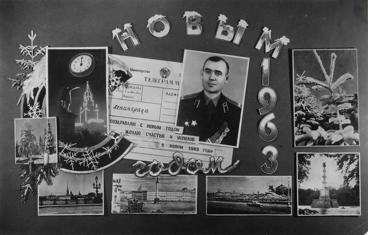 Виньетка с поздравление с Новым 1963 годом от подполковника артиллерии кавалера орденов Красного Знамени, Красной Звезды и Отечественной