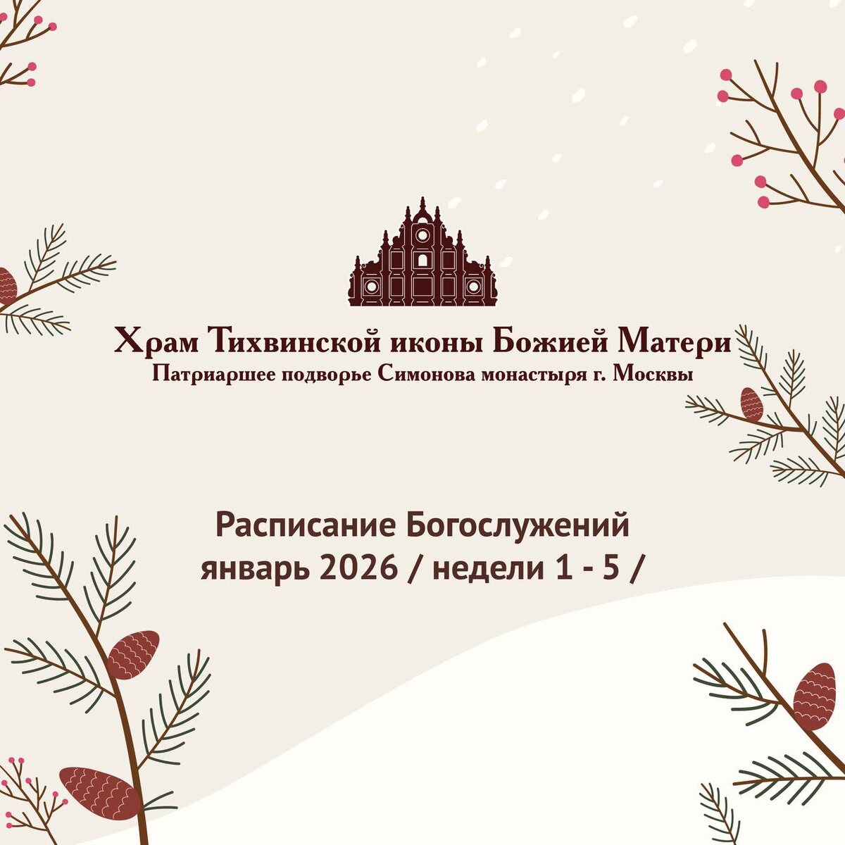 Расписание Богослужений на январь 2026 года