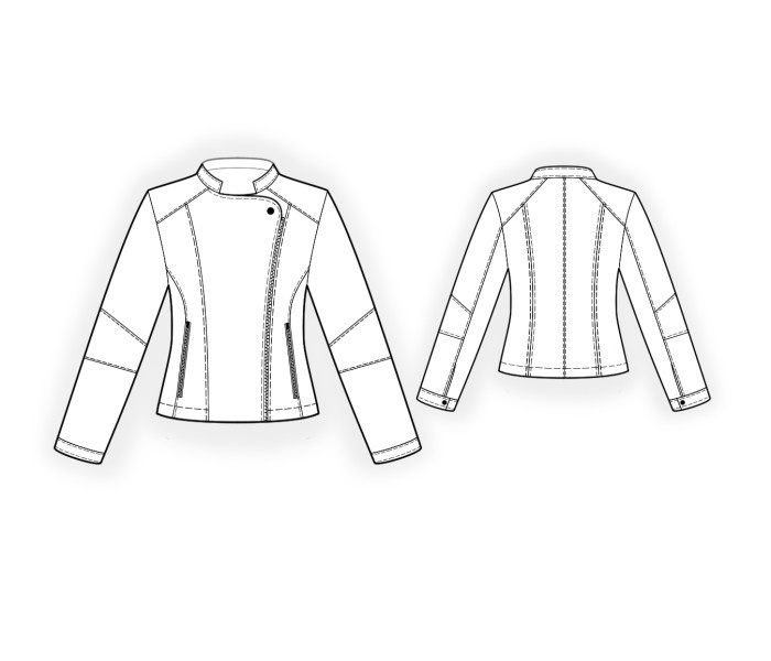 А ТАКЖЕ ВАМ НЕОБХОДИМО: подкладка; одна разъемная застежка – молния (приблизительная длина указана на лекале полочки); 2 молнии для карманов; 2 кнопки; 2 декоративные кнопки; подплечники.