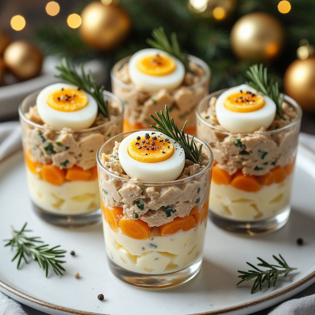 - Сервировка: подавайте в прозрачных бокалах, выкладывая слои (картофель, печень, яйца, морковь, лук), промазывая майонезом.