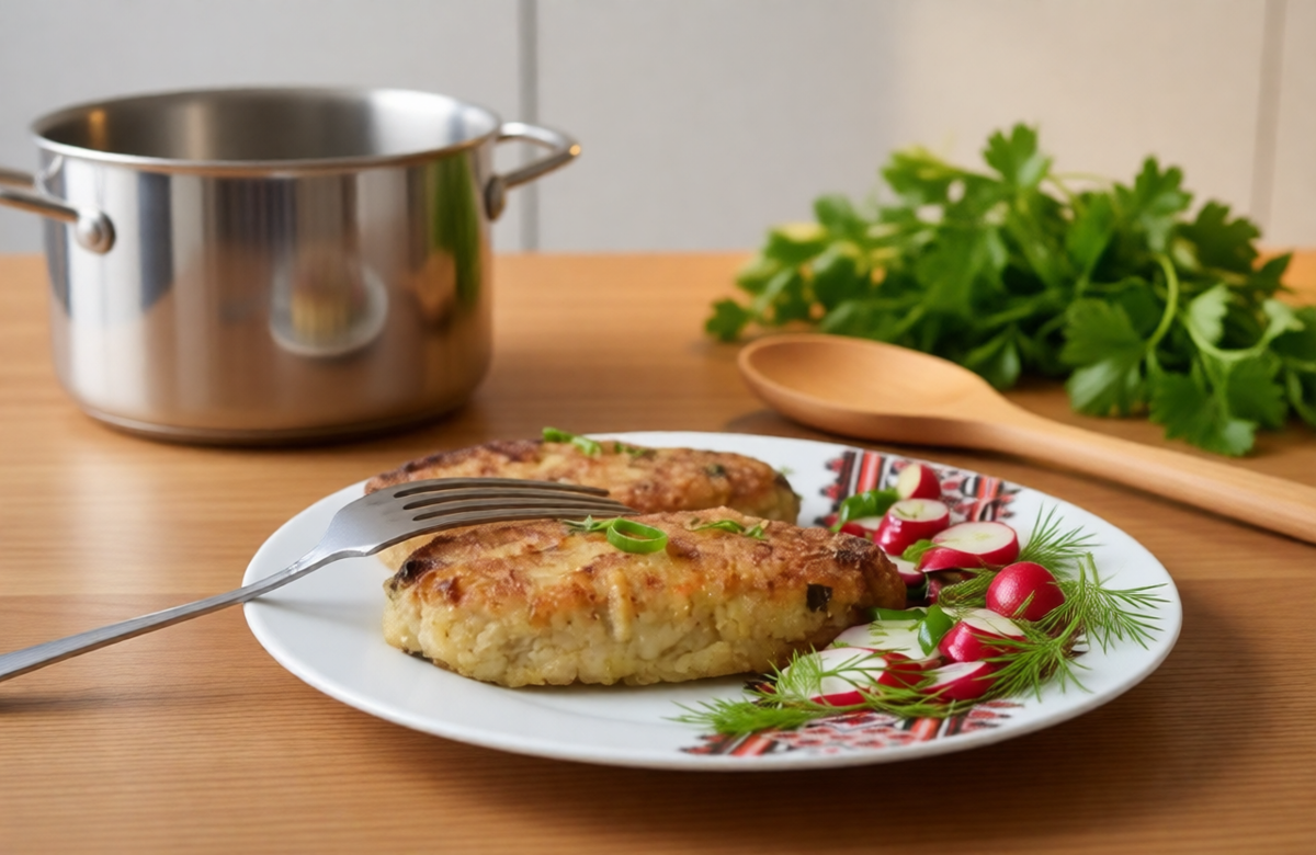 — Используйте остатки вчерашнего риса — так котлеты получатся плотнее.