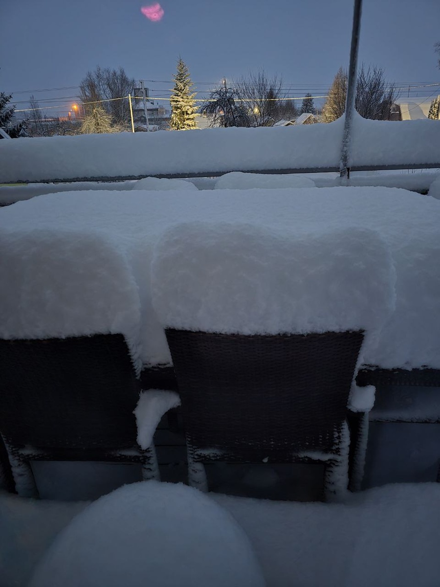 Доброго утра мои хорошие😅 У нас завал снега, около 50 см на этом столе😂😂😂 надо будет потом выйте убрать! Бедный стол🙈