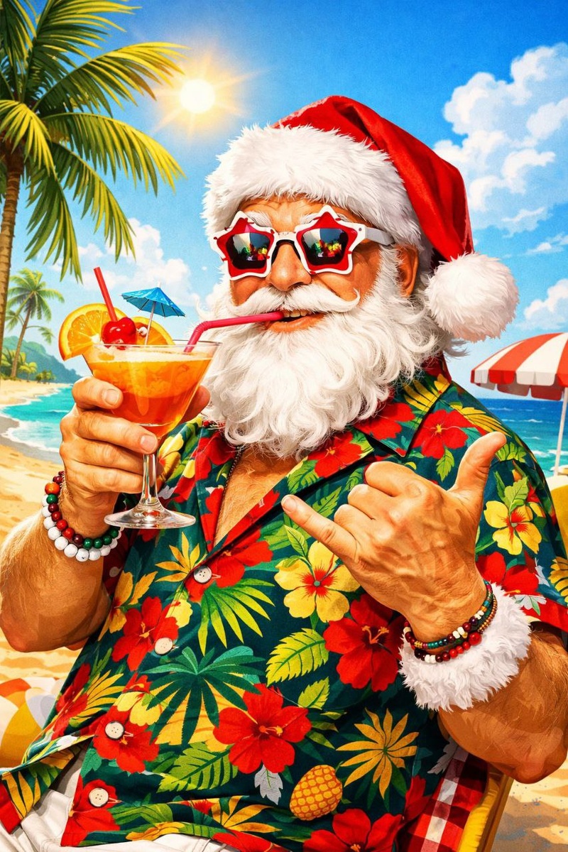 ? Очень много открыток красивых в этом году сделала с Дедом Морозом. Нейросети стали лучше генерировать этот образ, как и Снегурочку. В Пинтерест на глаза попались иллюстрации с карикатурным Сантой, вдохновилась этими иллюстрациями, и вот что из этого получилось... ✏️ Prompt: santa claus in a tropical shirt, festive sunglasses, sipping a cocktail, funny pose, beach background, bright colors, cartoon style, exaggerated features, cheerful atmosphere. 🧩 Model: 🦋 Sora Images 🎭 Styles: Fashion, Luxury, Detailed #PromptMaster #нейросети #креатив #новыйгод #soraimages #промты