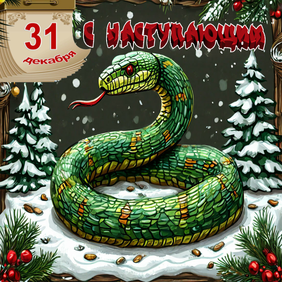 Всем желаю здоровья, счастья и благополучия в новом году! Уползает змея, до свидания.... Уползает змея, уползает.
