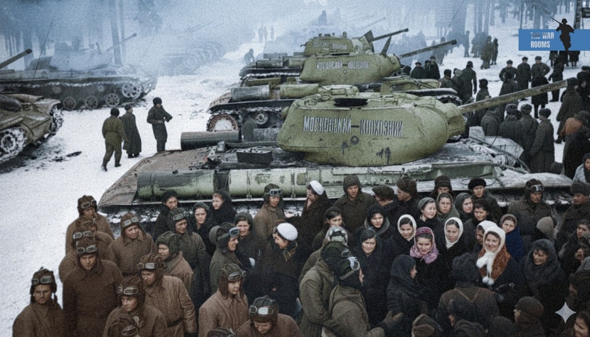 Делегация колхозников Ленинского района Московской области передает Красной Армии танковую колонну «Московский колхозник», состоящую из 21 танка КВ-1С.