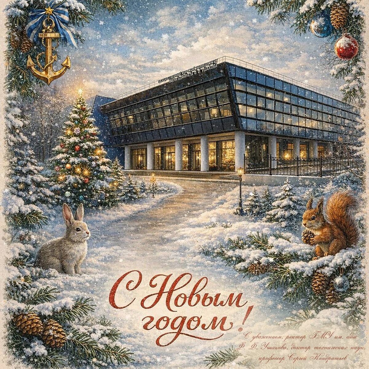 ! Совсем немного осталась до Нового 2026-ого и хочется подобрать самые добрые и искренние слова, чтобы поздравить и поблагодарить вас за прожитый год, за совместную работу, за ежедневный упорный труд, за те победы, достижения, успехи, которыми нам с вами запомнится уходящий 2025-ый. Весь год всю свою энергию вы направляли на решение грандиозных и вполне повседневных задач, укрепляя репутацию вуза, делая его современным, технологичным, передовым, лучшим в отрасли. Мы строили новое, модернизировали старое, укрепляли традиции, осваивали передовые технологии, устанавливали уникальное оборудование, учили, воспитывали, и, конечно же, противостояли многочисленным вызовам и трудностям. И благодаря усилиям каждого у нас это получалось. Вспоминая все самые яркие дни уходящего 2025 года, хотелось бы сказать спасибо за ваше неравнодушное отношение к родному вузу, профессиональный подход к делу, стремление справляться с любыми поставленными задачами. От всего сердца хочется пожелать, чтобы насту