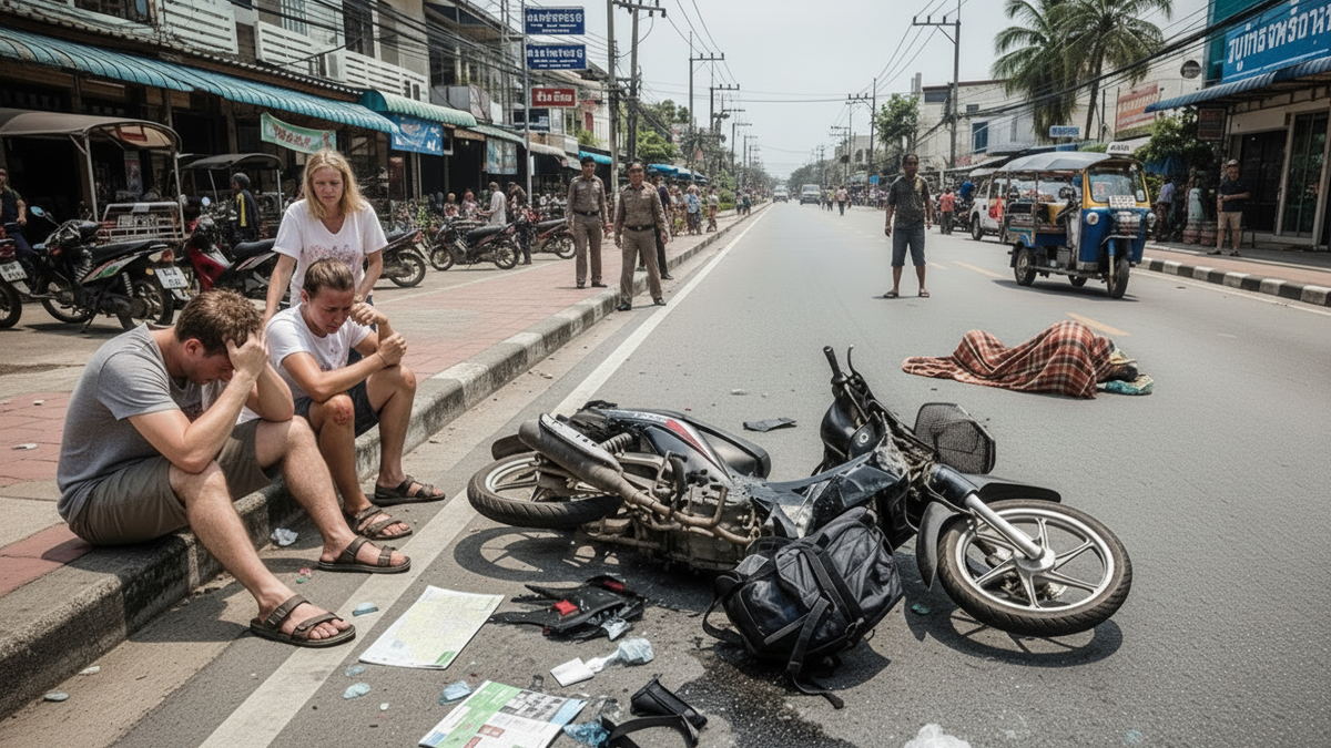 Происшествие с печальным итогом при участии туристов из России произошло в Таиланде и стало наглядным примером того, чем может закончиться беспечность на дороге. История, начавшаяся как обычная поездка во время отпуска, в считанные секунды превратилась в трагедию и многомиллионными последствиями. В провинциальном городе Канчанабури Денис и Людмила передвигались по дороге на арендованном транспорте. Во время движения они решили обойти мопед, который, по их мнению, ехал слишком медленно и мешал потоку. Манёвр оказался роковым: при обгоне произошло касание, из-за которого водитель скутера потерял управление. Его отбросило на встречную полосу, где он практически сразу оказался под колёсами пикапа. Удар был смертельным — местный житель скончался на месте, не дождавшись помощи. Поездка в Таиланд под защитой: страховка, которая спасает, когда это действительно нужно. Запись с камеры, оказавшейся поблизости, быстро разошлась по сети. На видео видно, что всё происходит за доли секунды: ни турис