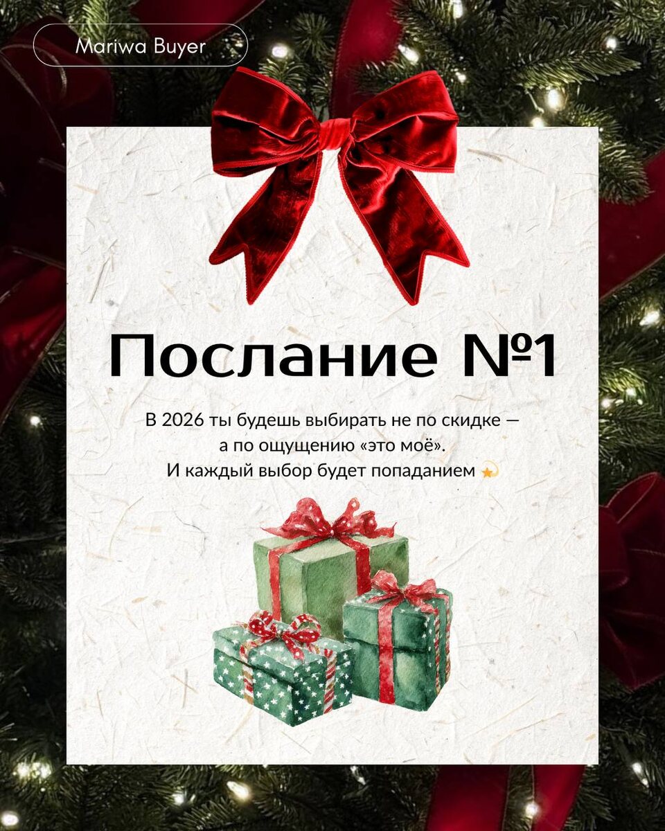 🎁 Иногда одно маленькое послание может задать настроение на весь год. Открой - и пусть оно найдёт тебя в нужный момент ⭐️ 🫂 Пусть 2026 будет про лёгкость, радость и приятные покупки для себя. 🔎 Навигация 📂 Условия 🐾Витрина брендов ➡️ Связь с нами 🎤Мы работаем официально - с нами надежно и безопасно !