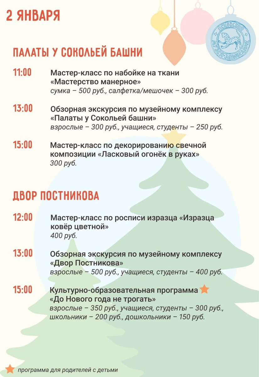 Афиша новогодних и рождественских событий в Псковском музее-заповеднике с 2 по 11 января 🎄