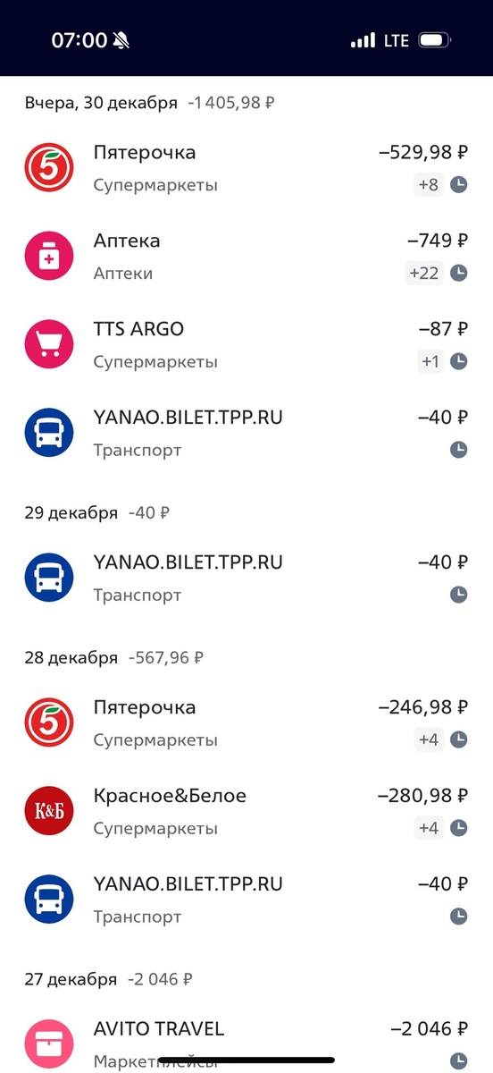 Мы вчера уехали из города, находились на дороге. Вчера у меня были списаны деньги с карты, которые я и ребенок не совершали. Потому что мы оба находились в машине. Плохо в том что ребенок сразу не сказал. 19 декабря была утеряна карта, сам тоже сразу не заметил. Сейчас история платежей смотрю, человек оказывается с 19 декабря совершает покупку. Если вы решили воспользоваться чужой найденной картой и хранящимися на ней деньгами, то не стоит этого делать, имей совесть! За это вам грозит уголовная статья. Сейчас карта заблокирована. Как приеду напишу заявление, везде есть камеры. Здравствуйте! Анонимно пожалуйста