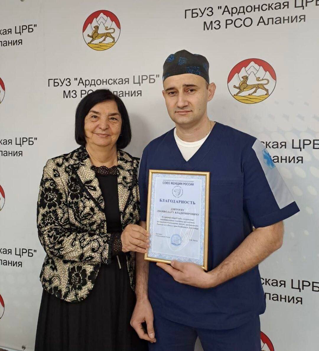 👨⚕️Врачу-травматологу-ортопеду Ардонской ЦРБ Дзамболату Дзитоеву вручена Благодарность президента Союза женщин России Е