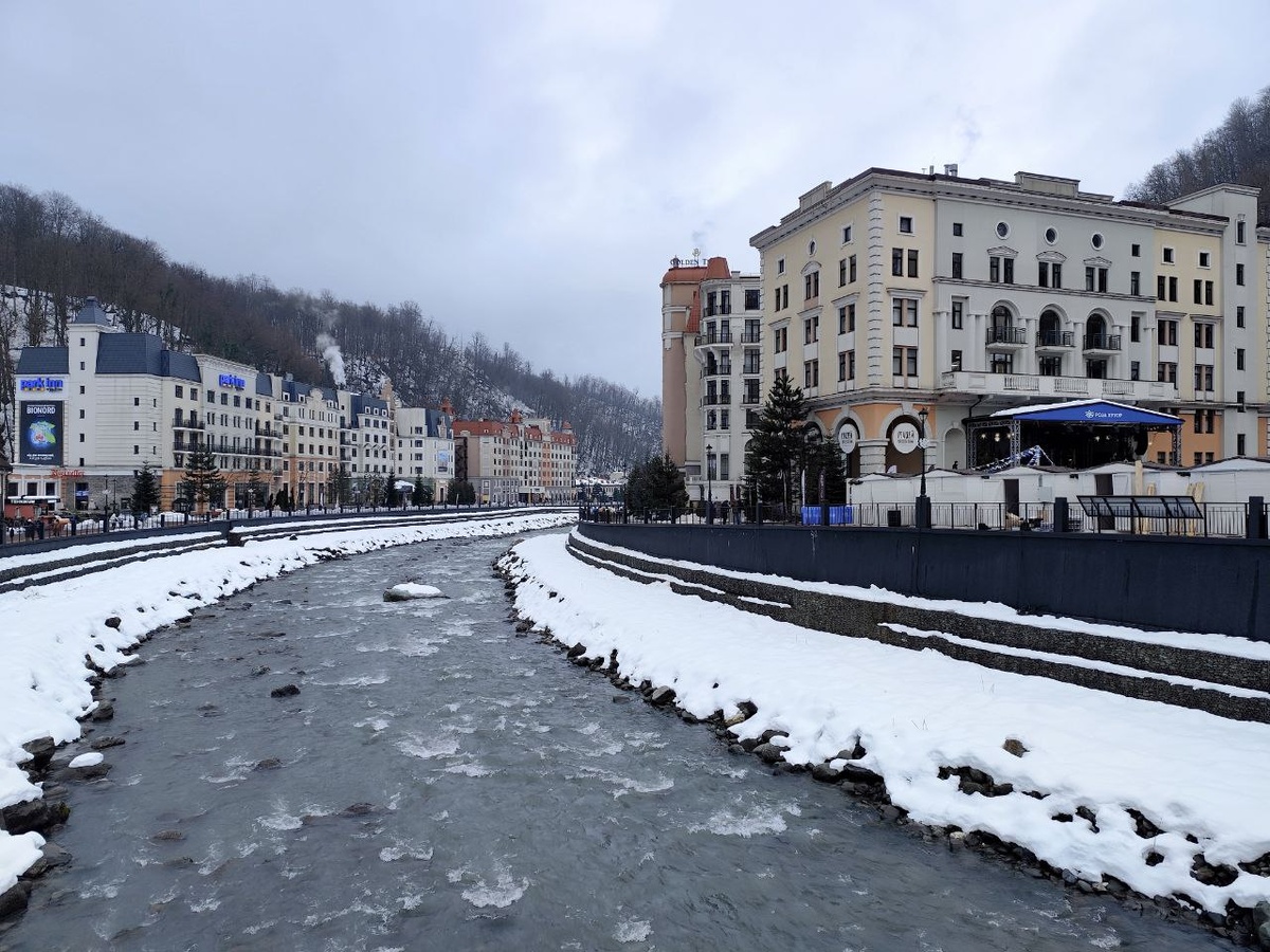 Оказалось, получился самый хороший вариант из всех возможных. Перед Новым годом все максимально нарядное, даже пафосное. И народу на курорте не так много, чтобы тратить время в очередях или испытывать дискомфорт на склонах. Туристов, конечно, прилично, зимой курорт живет активной жизнью, но перегруженности инфраструктуры мы не заметили.