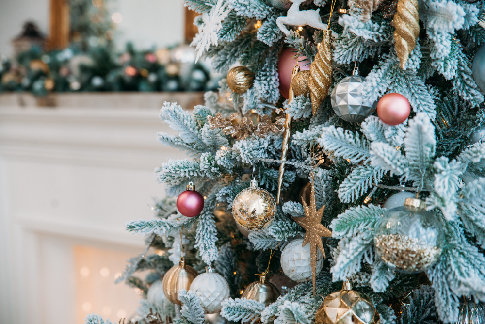 - новогодние игрушки и украшения на ваш вкус;
