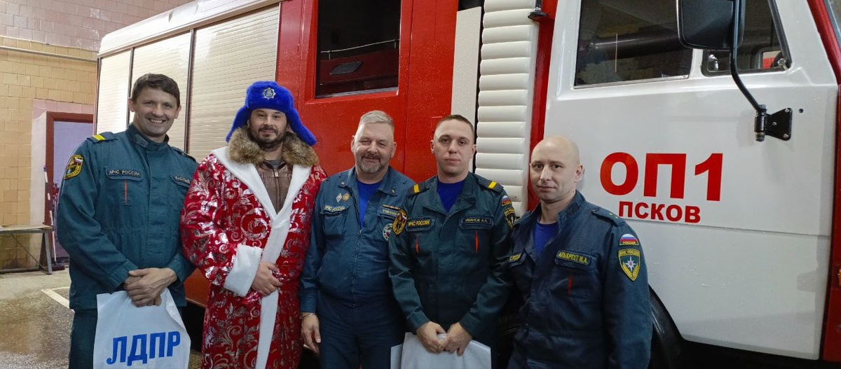 ! Работники экстренных служб – настоящие герои, которые даже во время новогодних праздников не оставляют свои посты и стоят на защите наших жизней. И сегодня, в преддверии Нового года, руководитель Псковской молодежной организации ЛДПР Владимир Ефимов посетил пожарную часть города Пскова, чтобы поздравить героев с наступающим праздником. 💬 «Спасибо вам за ваш нелегкий труд, за преданность профессии и любовь к своему делу, дорогие наши спасатели. Пусть этот Новый год подарит вам радость, тепло семейного очага и уверенность в завтрашнем дне. Желаю, чтобы ваши смены были спокойными, а новогодние праздники прошли мирно и радостно», – сказал Владимир Ефимов.