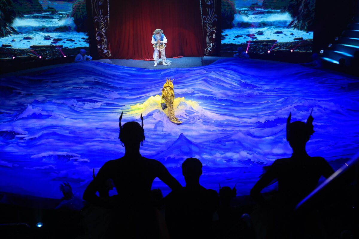 Фотограф «Петербургского дневника» запечатлел яркие элементы спектакля «Сказка о Золотой рыбке» с Эдгардом Запашным, который показали в КСК «Арена».