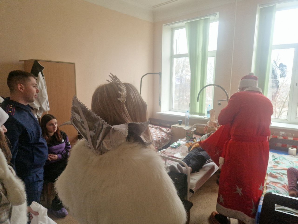 Дед Мороз в погонах поздравил детей, находящихся в республиканской травматологии. Как и положено, зимний волшебник раздал юным пациентам подарки. Источник: СК ДНР